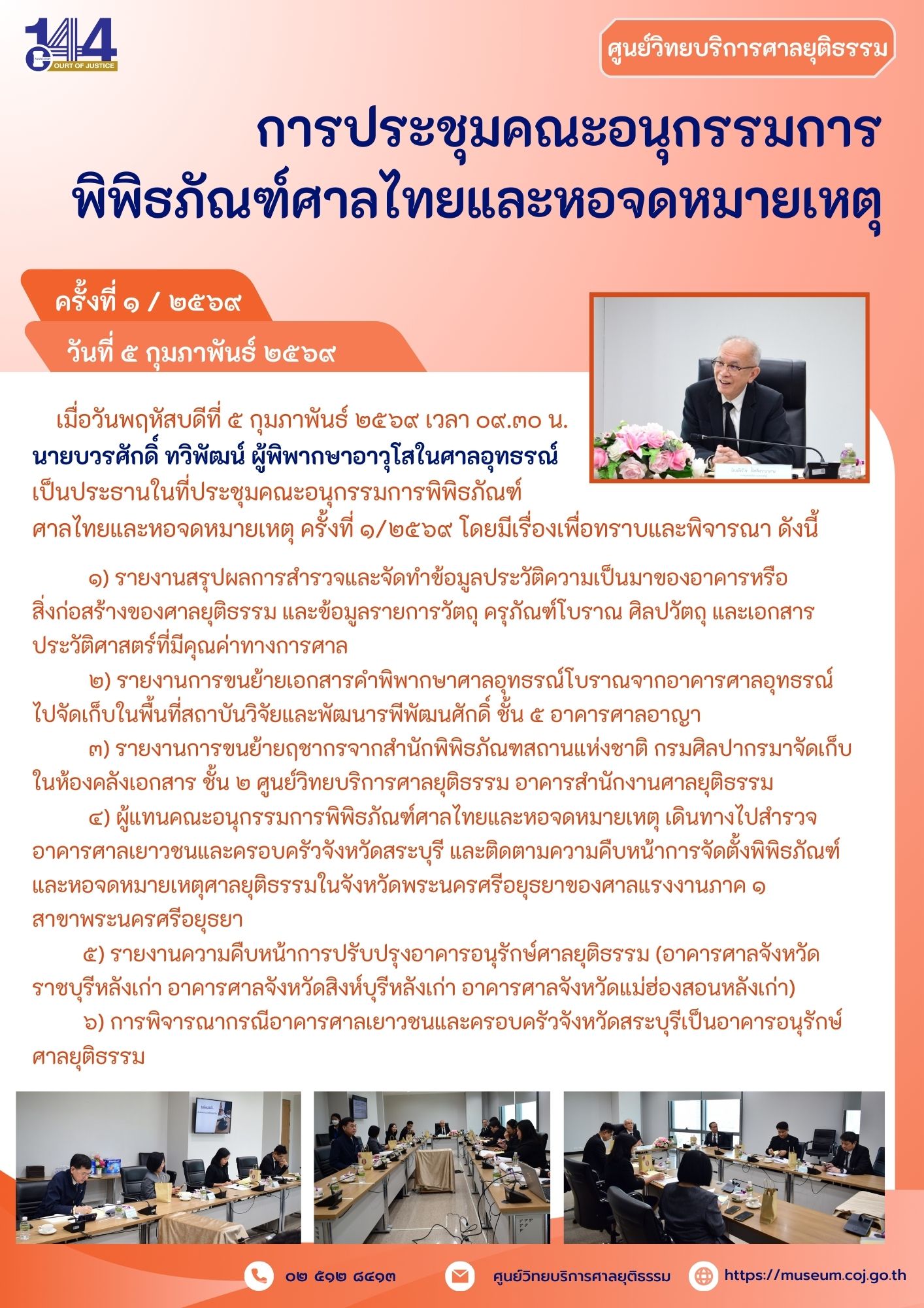 การประชุมคณะอนุกรรมการพิพิธภัณฑ์ศาลไทยและหอจดหมายเหตุ ครั้งที่ 1/2569