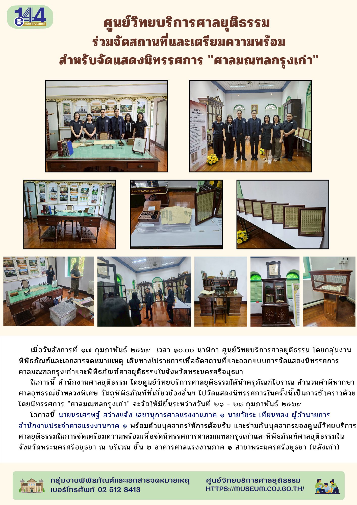 ศูนย์วิทยบริการศาลยุติธรรมร่วมจัดสถานที่และเตรียมความพร้อมสำหรับจัดแสดงนิทรรศการ "ศาลมณฑลกรุงเก่า"